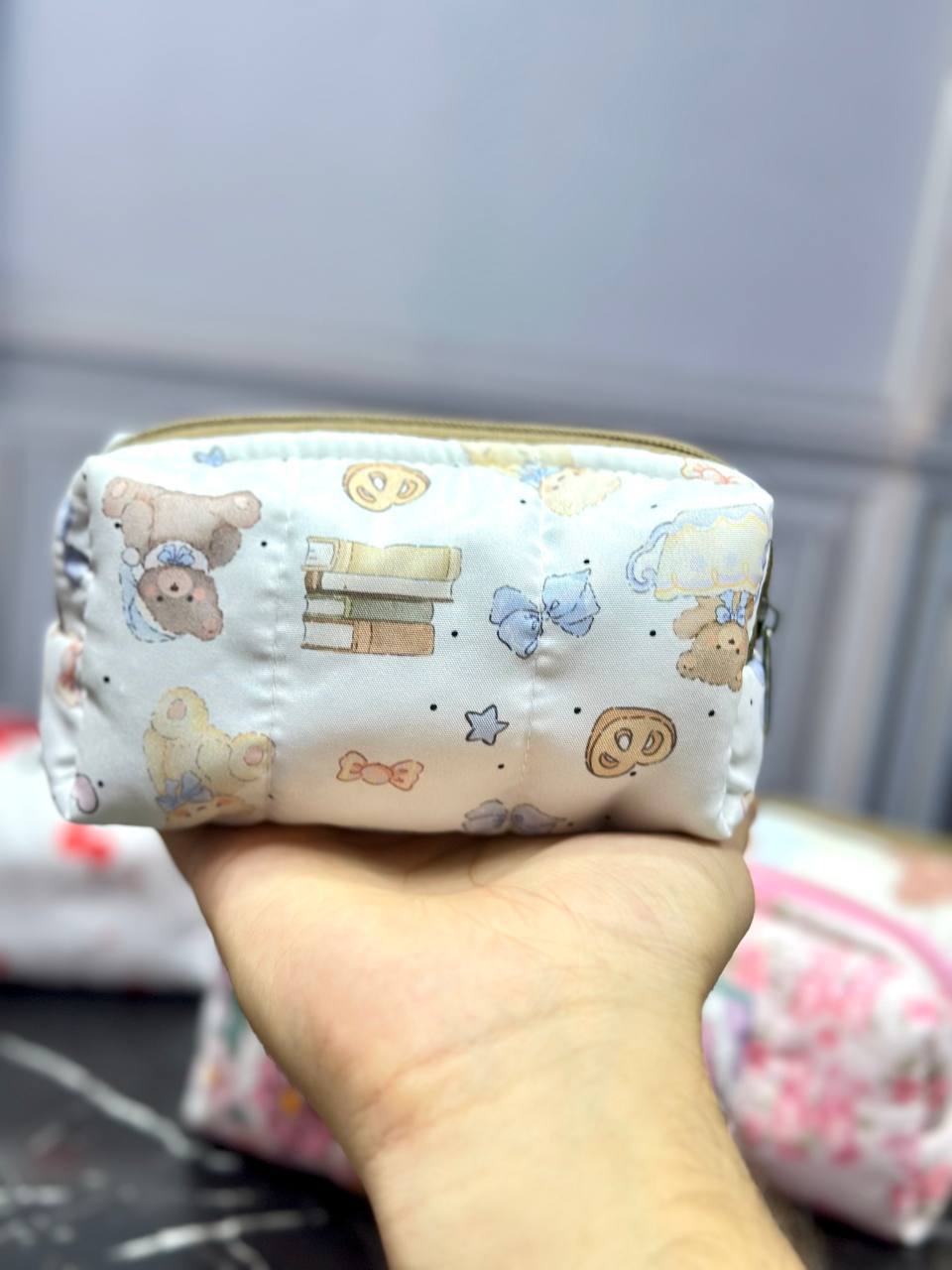 کیف آرایشی پینترستی سایز کوچیک، کیفیت پارچه بالا، قابل شستشو، جا دار و شیک، در چهار طرح جذاب و متنوع
